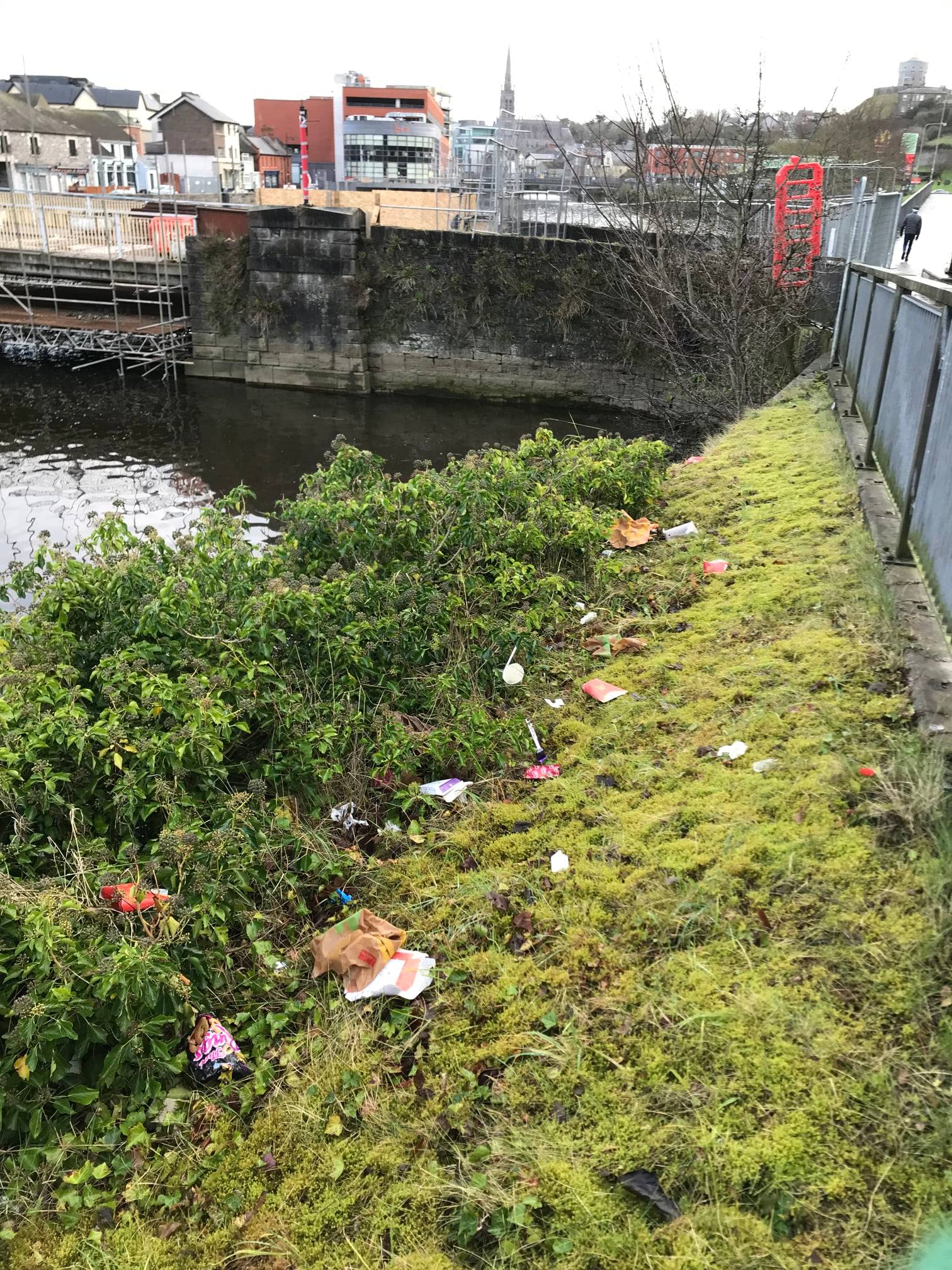 Massive issue with materials from McDonald’s being dumped on the banks of the river which is also ending up in the River Boyne, which ultimately gets washed out to sea.