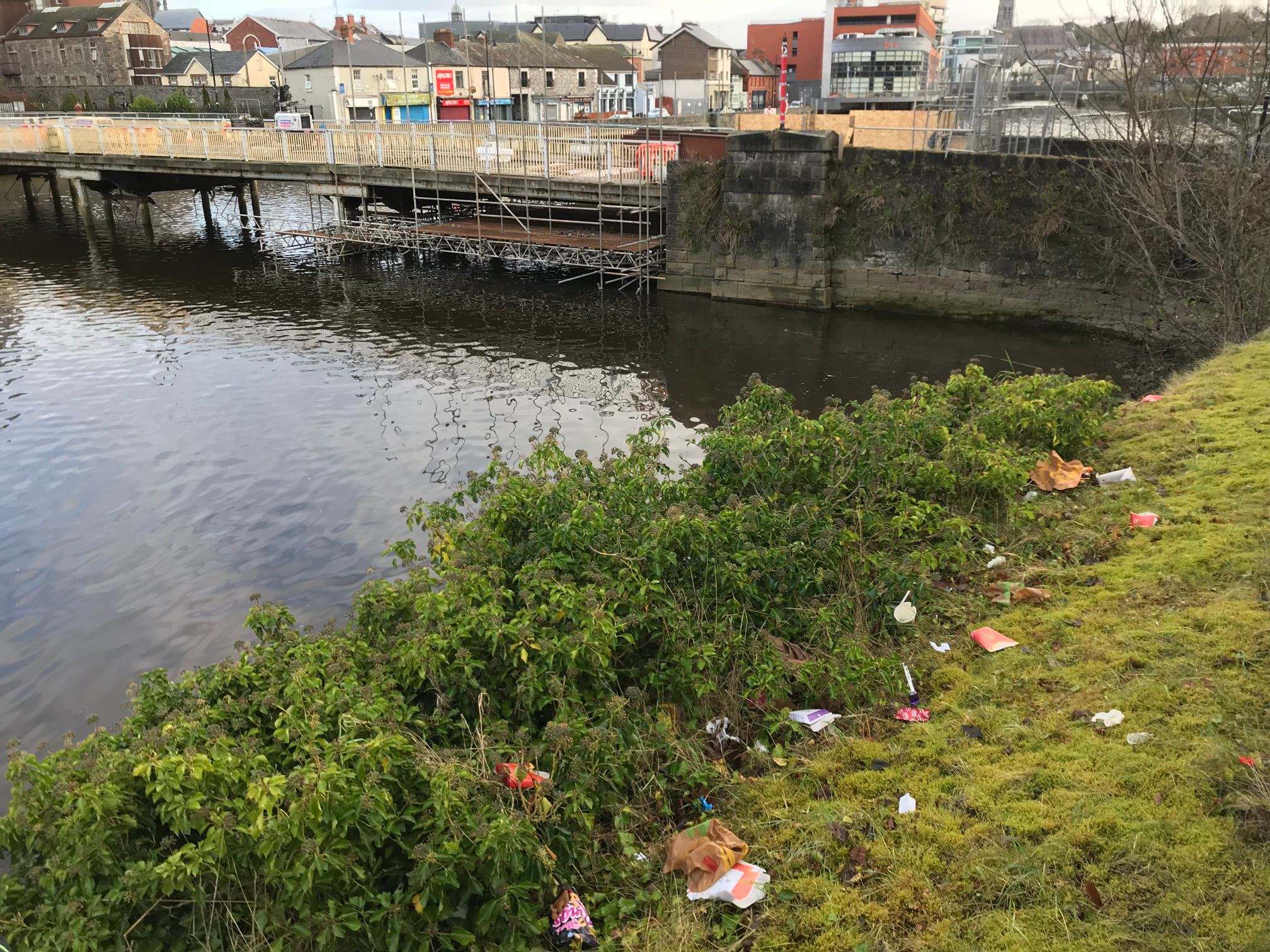 Last Sunday out with a group of volunteers as always doing their bit for the town and environment, we did along the river. The place was destroyed with fast food wrappers and drinks cans and bottles. This material had mostly been chucked over the railings beside the river and then had blown down onto the river. This ends up in the river and then out in the sea. Most of it will lead to microplastics in the water we will all then drink.