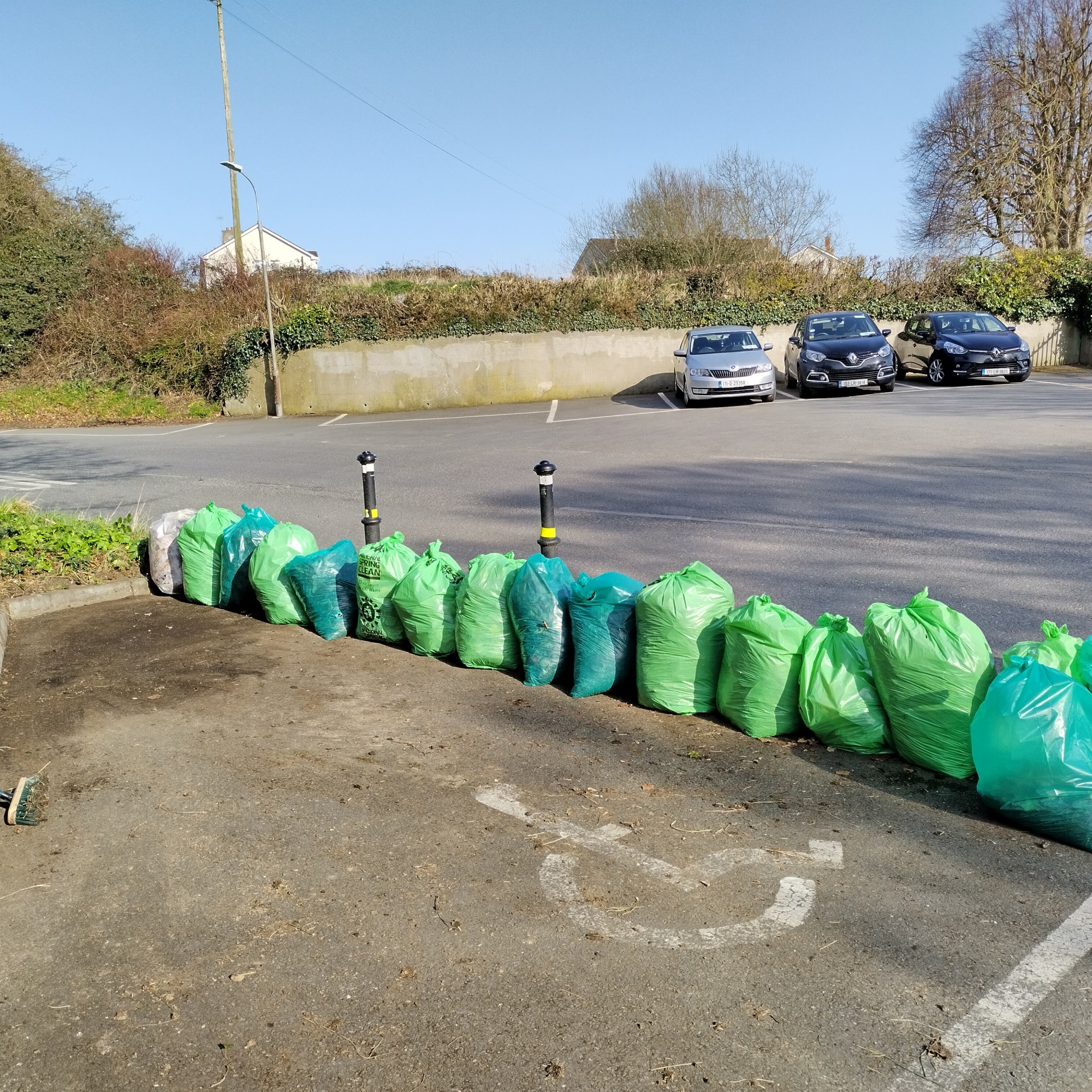 Drogheda Tidy Towns volunteers out in action today for National Spring Clean, we tidied up the car park area beside Paupers Graveyard, known locally as Bully’s acre. We collected 17 bags of litter, leaves, and some larger items in the space of 90 mins.