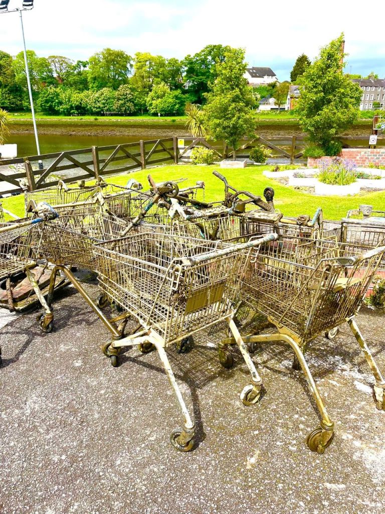 If you are a Drogheda Local or visit Drogheda regularly you will be very familiar with seeing trolleys just dumped into the River Boyne. When the river level is low it is easier to see the trolleys that get trapped in the muck along the riverbank. Unfortunately it has become a common sight to see shopping trolleys dumped into the river Boyne where it is most visible along the boardwalk at the Dominic’s Park.